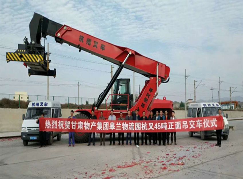 2018年12月10日,杭叉集團又一臺45噸集裝箱正面吊下裝配線,即將發往蘭州鐵路局瓜州貨場,是繼發往蘭州鐵路局梅花井貨場、太陽山貨場、皋蘭物流園、蘭州新區路港物流園后,第五臺將服務于蘭州鐵路局貨場的集裝箱正面吊。