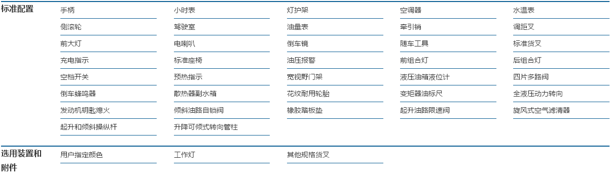 ●采用多項新技術(shù)設(shè)計而成的叉車,關(guān)鍵件采用行業(yè)主流廠家產(chǎn)品配套,整機(jī)性能先進(jìn),可靠性高。外觀造型簡潔明快、穩(wěn)重大方,符合設(shè)計潮流。適用于港口、鐵路、鋼鐵等繁重工況的工作環(huán)境,用途廣泛。